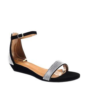 Keeping it simple in these go-to wedges. Featuring an open toe, ankle strap, rhinestone detail on a low platform wedge. They come in Black or Red (check other listings).