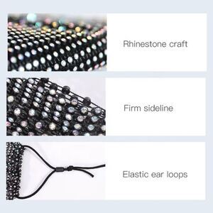 Adult breathable rhinestone mask. Iridescent rhinestones on black mesh. Durable, washable, and very cute!