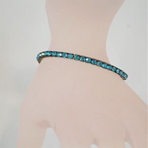 Rhinestone Chain Stretch Bracelet Blue Tennis Vintage