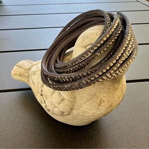 This rhinestone gray leather bracelet is a wrap with adjustable’s snaps for sizing
