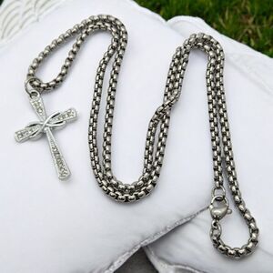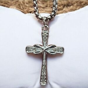 Rhinestone Infinity Cross Pendant Women's Silver Stainless Steel Necklace Gift