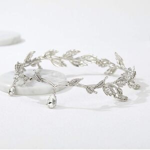 Rhinestone Leaf Wedding Crown Headband for Brides Crystal Pendent Tiara Headband
