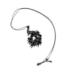 Rhinestone Peacock Pendant Necklace Hematite Tone