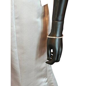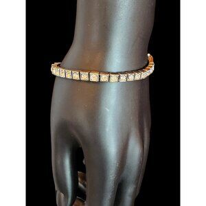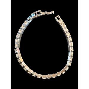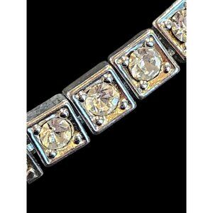 This Rhinestone/Silver Tennis Bracelet features a round white crystal rhinestone in a silver square setting, providing a classic and elegant look. The extra extender and clasp closure ensure a secure and comfortable fit. Perfect for adding a touch of sparkle to any outfit.