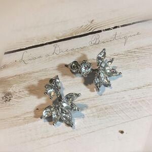 Elegant silver 2-way rhinestone post earrings with teardrop fan below. Wear the studs alone or slip the fan over the post for a more glamorous look!
