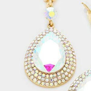 Rhinestone Trim Abalone Crystal Teardrop Clip On Earrings NWT
