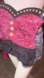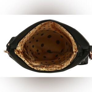 Go for full glamour with this iconic vest design handbag that is covered in studded rhinestones and trimmed by a metallic ruffle.