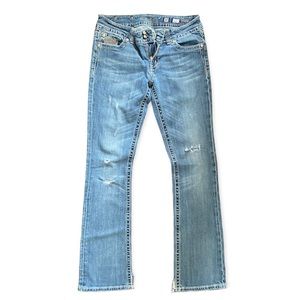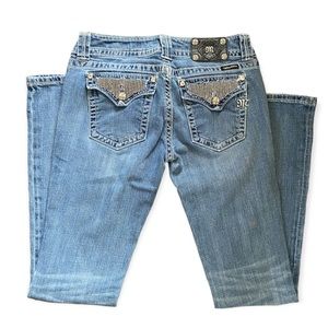 •authentic miss me jeans with rhinestones on the back and front pockets