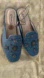 Rhinestones Blue Jeans Size 8 Slip on Shoes Women's Blue Embellished Mules