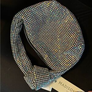 Elevate your holiday look with this top handle bag. Crafted with crystal embellishments and a sleek top handle, this bag exudes luxury and adds a touch of glamour to any outfit. Perfect for any occasion where you want to shine.