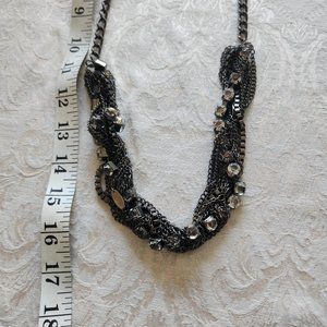 Rhinestones and Chains in Gunmetal Black 17" Necklace