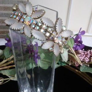 Vintage bracelet with small and lager size rhinestones in the middle of Quartz style pebbles of a flower. Gold colored clasp closes this wearable art.
