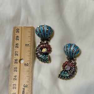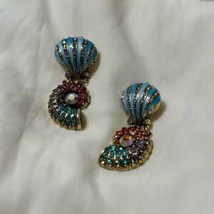Multicolor rhinestone decor seashell dangle stud earrings in gold tone hardware