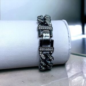 Rhinestones on Black l Bracelet l 8” l Chunky, Trendy l New