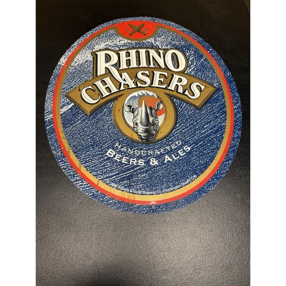 Rhino Chasers Handcrafted Beer & Ales 1996 Tin Beer Sign Vintage Beer Sign