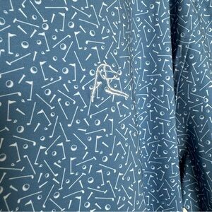 Elevate your style with the Rhoback Men's Polo in a striking blue golf club and ball pattern. This short-sleeve polo is crafted from a lightweight blend of polyester and spandex, ensuring breathability and comfort whether you're on the golf course or enjoying a casual day out. The regular fit and collared neckline provide a classic look, perfect for both sporty and relaxed occasions. Designed for those who appreciate both style and function, this polo is a versatile addition to any wardrobe. Pre-owned and in excellent condition.