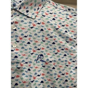 Rhoback Mens Medium Dinosaur Print Pattern Multicolor Golf Polo Shirt