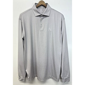 Rhoback Mens Medium Performance Polo Shirt Long Sleeve Gray Striped Golf Dog