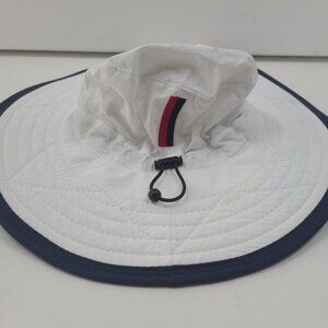 The item shown is a Rhoback Men's Sun Hat, also known as "The Rhobucket". It is a white performance bucket hat designed for outdoor activities