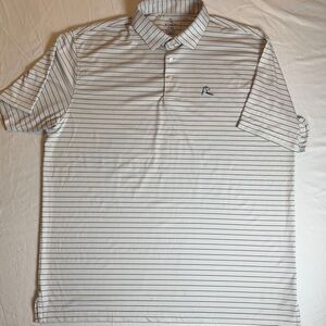 Rhoback Polo Shirt Adult 2XL White Blue Striped Short Sleeve Stretch Mens
