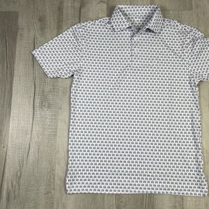 Rhoback Polo Shirt Men's Small Golf Logo The Blue Crab Performance AOP EUC N