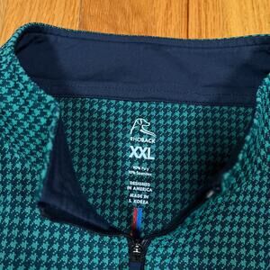 Excellent pre owned condition, polyester spandex blend - green houndstooth pattern with Rhoback logo on chest. Size 2XL. See pictures for details and measurements. Orders ship out on Monday, Wednesday, and Friday.