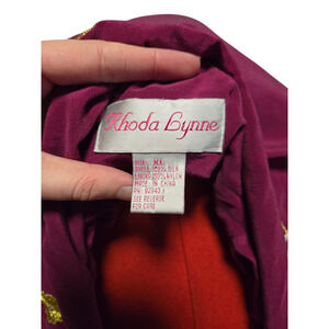 Rhoda Lynne red bomber jacket with embroidery and pockets, size xl