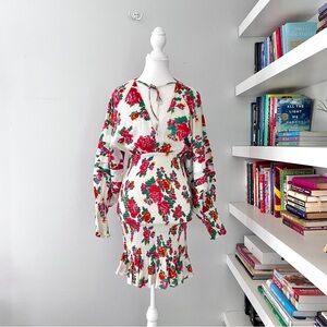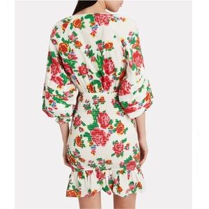 Rhode Anya Smocked Floral Dress White & Red Size Small