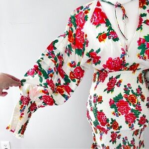 Rhode Anya Smocked Floral Dress White & Red Size Small.