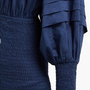 Rhode Resort Anya Smocked Mini Dress in Navy Blue Cotton