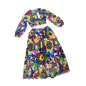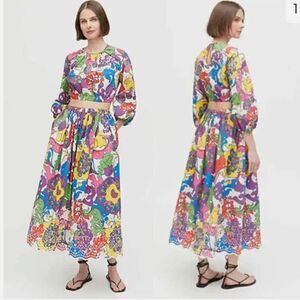 Rhode Audrey Midi Skirt & Adeline Crop Top Woodstock Floral Rainbow Size Small