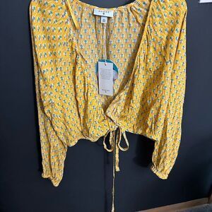 Rode By Target Women's Dainty Lotus Print Wrap Top Yellow/Turquoise Size XXL NWT