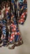 Print: A bold mix of motifs — chains, medallions, stripes, animal-inspired patterns, and pops of red, blue, black, and white. It has a luxe, baroque-inspired vibe.
