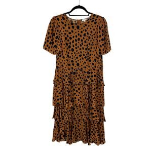 Rhode Cheetah Print Short Sleeve Tiered Serena Midi Dress Womens Large AS IS