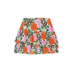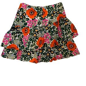 Rhode Eliette Skirt in fun Aura Blossom print. New with tags in size 6. Made of high-quality cotton with a side zipper, hits above the knee. Asymmetrical ruffles add interesting details. Can be worn day or night all summer long.