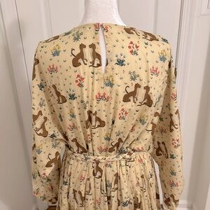 RHODE "Ella" mini dress is perfect for brunches, parties, or warm-weather escapes. Made from airy printed cotton, it features long blouson sleeves, a flattering fit-and-flare shape, and a beautifully tiered mini skirt. The whimsical multicolor print includes animals and colorful flowers, giving this piece standout personality.