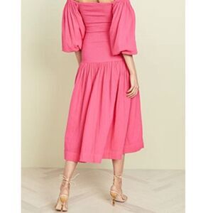 Rhode Harper Midi Hot Pink Dress Smocked Off Shoulder Size L