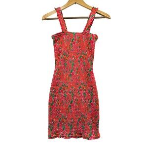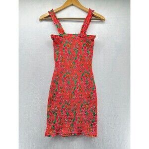 Rhode Jasmine Mini Dress Size XS Red Dazzle Floral Smocked Bodycon Cotton New