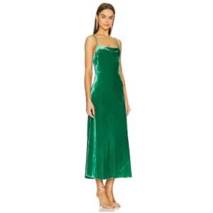 The Jemima dress by Rhode evokes the pared-back minimalism of the '90s. Designed in shimmering velvet for an eye-catchingly opulent look, the chic slip silhouette is styled with thin shoulder straps, a cowl neckline and tie-up back.