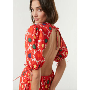 Rhode Jolie Puff Sleeve Open Back Maxi Dress Grenada Floral XS