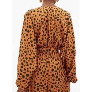 Rhode Jumpsuit Blake Long Sleeve Wide Leg Satin Leopard Cheetah Print L NWT New