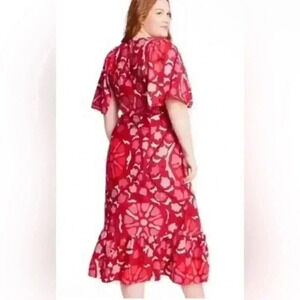 Rhode x Target large zinnia print midi dress. Bell sleeves. Ruffled hem.
