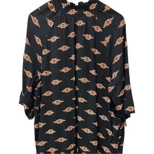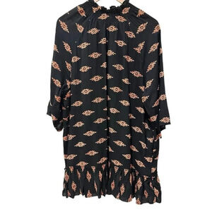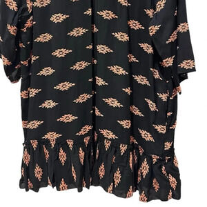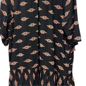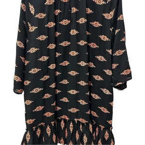 Elegant dress in a drop waist silhouette with a beautiful black and orange ikat pattern. Comfortable and easy to style!