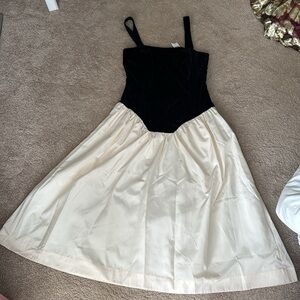 Beautiful midi dress from Rhode. Rich black velvet square neckline top and ivory bottom with dropwaist. Sleeveless with thick straps. Great quality