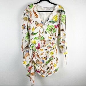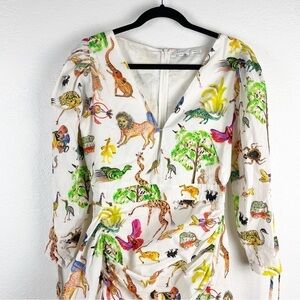 Rhode Piper Safari Animal Print Cotton V-Neck Mini Dress White Medium Casual