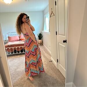 Rhode Rainbow Zig Zag Cotton Maxi Dress Small