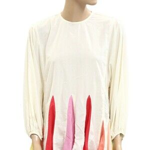 Rhode Resort Ella Mini Dress Godet Trapeze Long Sleeve Swing Rainbow XS 283245
