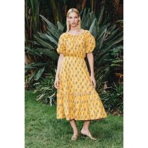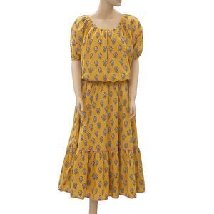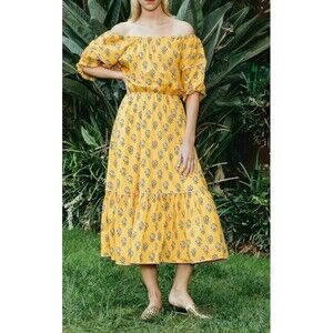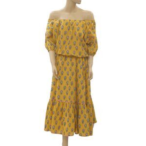 Rhode Resort Frida Printed Midi Dress Floral Off The Shoulder Yellow M 231156