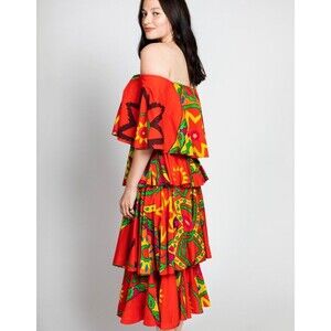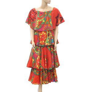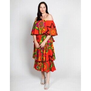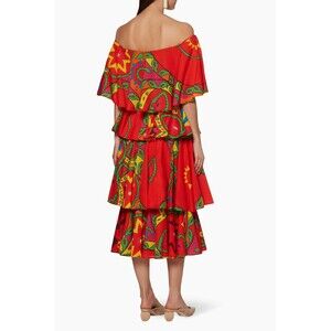 Rhode Resort Lulu Printed Midi Dress Tiered Off Shoulder Spring Red XS 255232