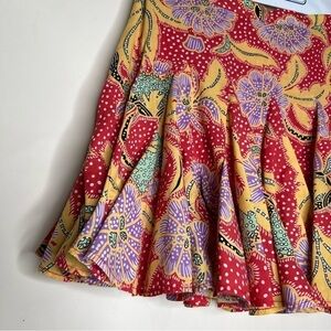 Adorable "Nora" skirt in a colorful floral print in hues of red, purple, yellow, green and black ("Red Multi"). Very similar to Farm Rio exotic prints!